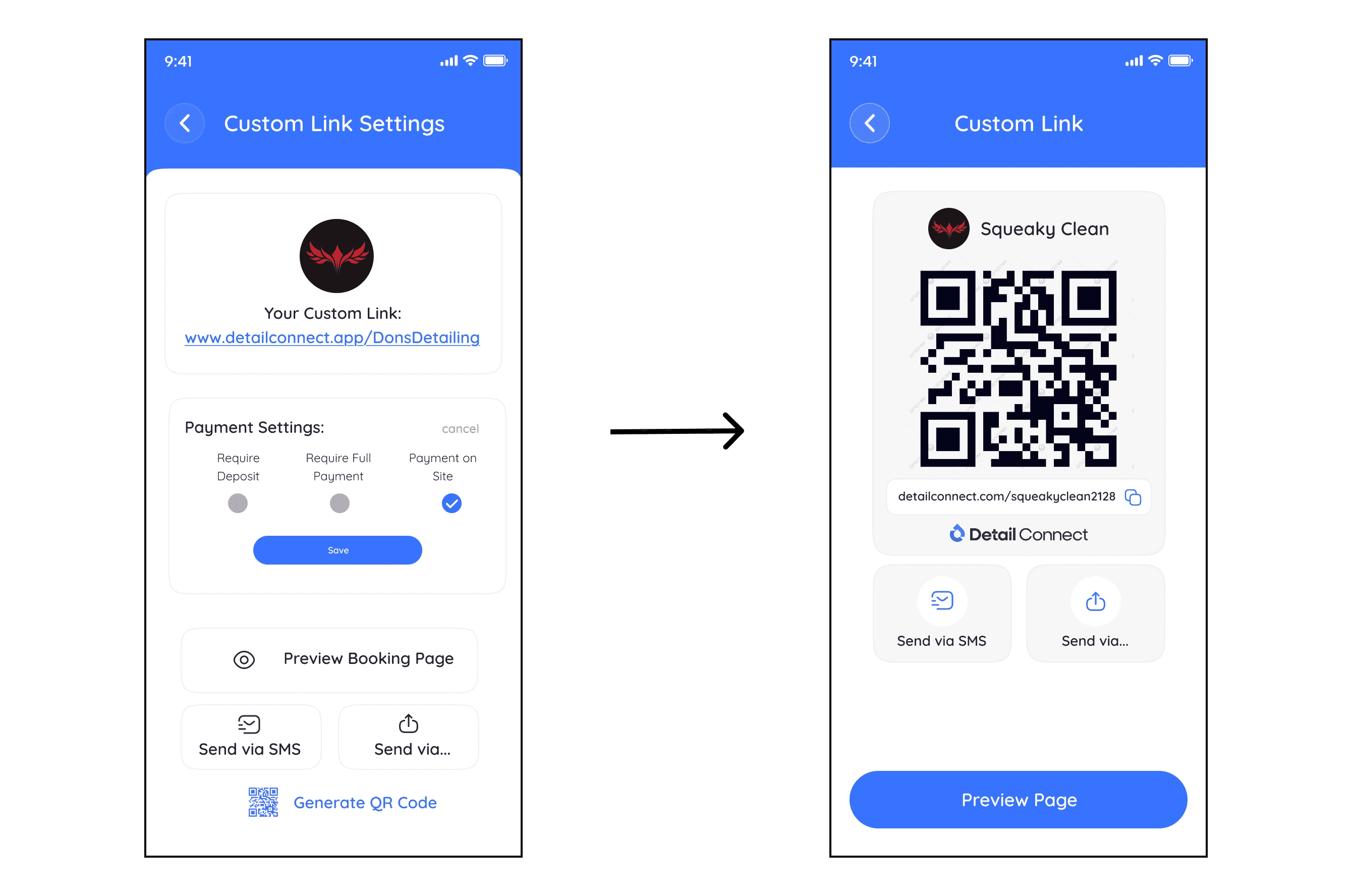We decided to shift the focus of the page from the company to the QR code along with its link, so that detailers could either use the QR code or their link to share with their clients. This had positive reception with the detailers, many stating that it was simple and effective at it's purpose.